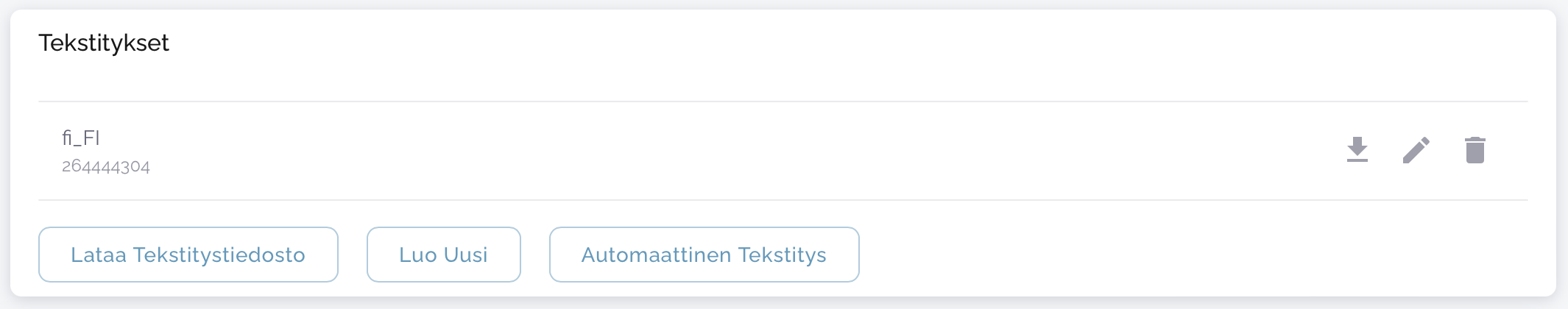 Tuotettu tekstitystiedosto näkyy tekstitysluettelossa. Se nimetään valitun kielen mukaan.