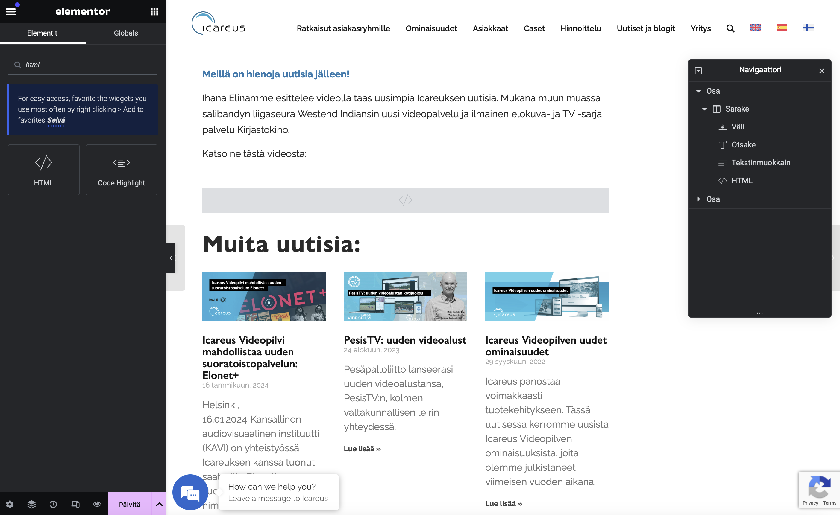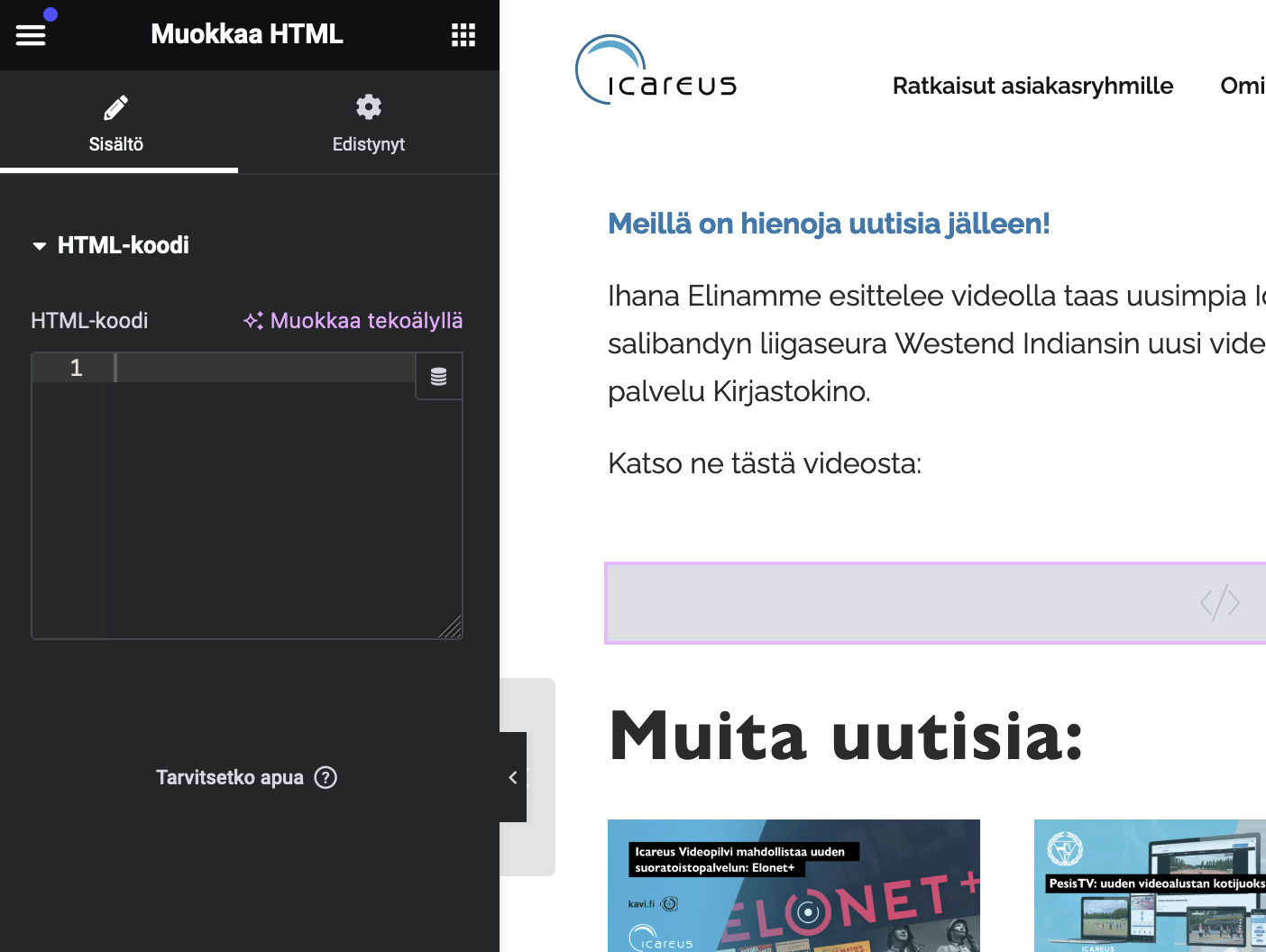 Napsauta HTML-editorilohkoa aloittaaksesi sen muokkaamisen.