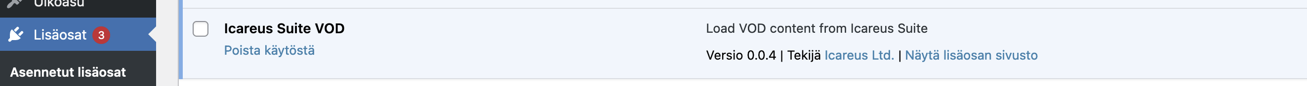 Sinun on asennettava Icareuksen WordPress-laajennus nimeltä Icareus Suite VOD.